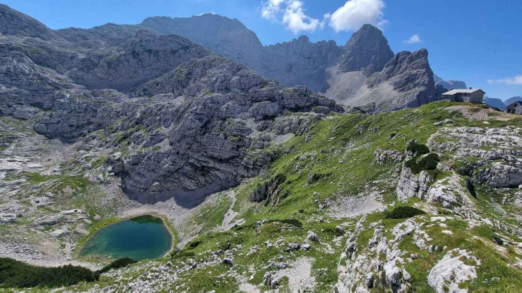 From the lake it is only about 15 minutes of additional climbing to reach the mountain hut Dom na Kriških podih.