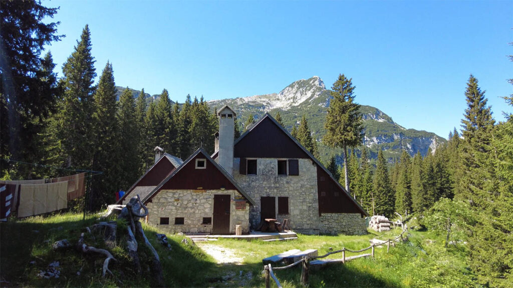 After around two and a half hours of moderate ascent, you reach the beautiful Komna Plateau and the mountain hut Koča pod Bogatinom, where I recommend spending the night.
